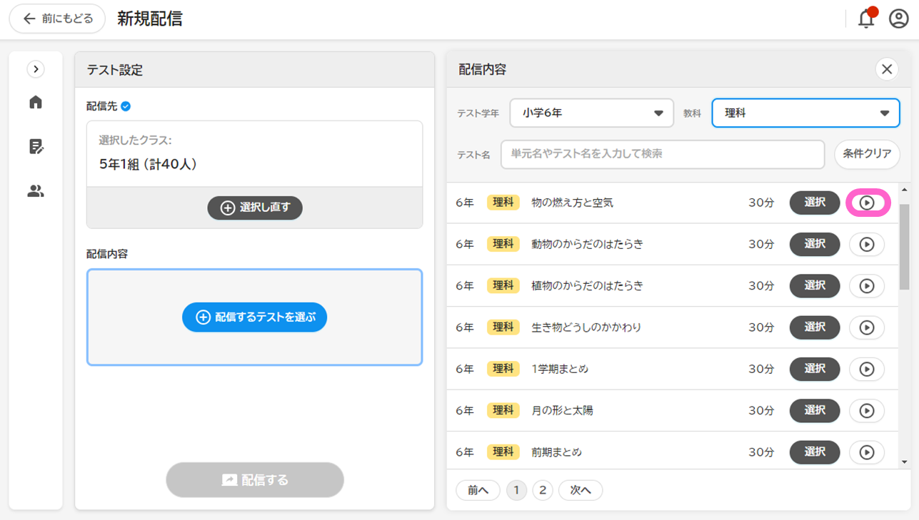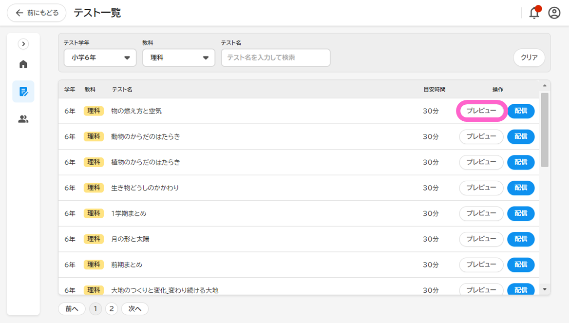 画面左のナビゲーションメニューの「テスト一覧」から確認が可能です。